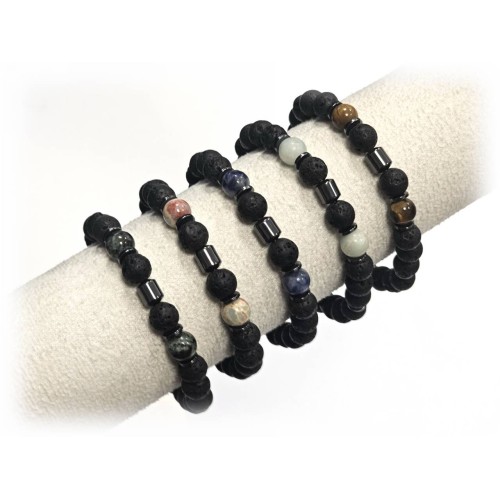 Αντρικό Βραχιόλι Πέτρα μακραμέ και λάστιχο, 4# 6# 8# λάβα Πακ.(36Τεμ.)..