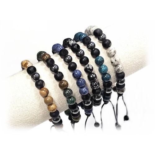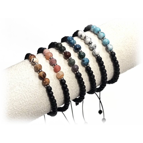 Βραχιόλι Πέτρα μακραμέ, 6# λάβα, πέτρες και ατσάλινα στοιχεία Πακ.(18Τεμ.)..