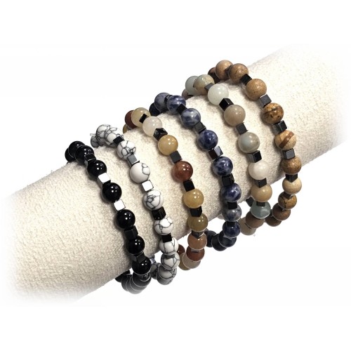 Αντρικό Βραχιόλι Πέτρα λάστιχο, 8# διάφ. πέτρες και ατσάλινα στοιχεία Πακ.(20Τεμ.)..