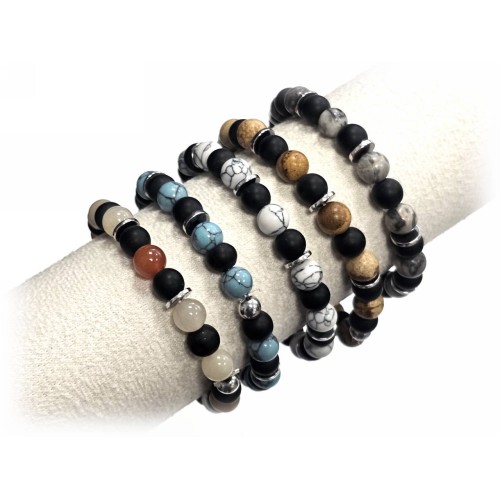 Αντρικό Βραχιόλι Πέτρα λάστιχο, 8# διάφ. πέτρες και ατσάλινα στοιχεία Πακ.(12Τεμ.)..