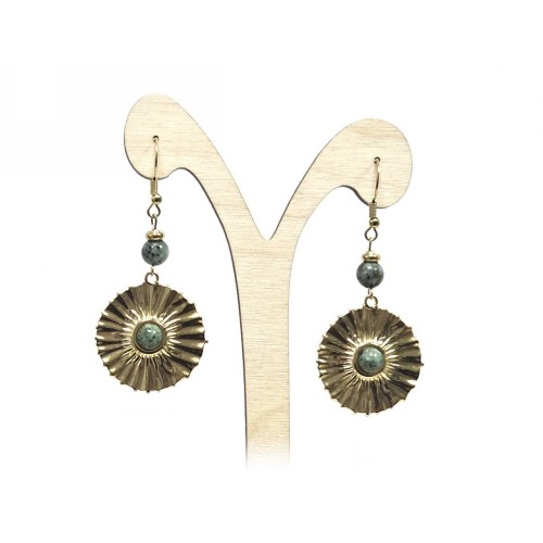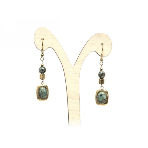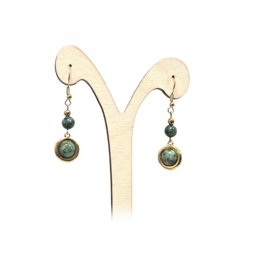Σκουλαρίκια Πέτρα Ατσάλι 316L, με μαλαχίτης σε χρώμα Χρυσαφί..