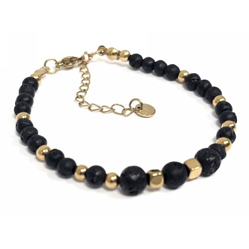 Βραχιόλι Πέτρα με λάβα και στοιχεία από ατσάλι σε χρώμα Χρυσαφί..
