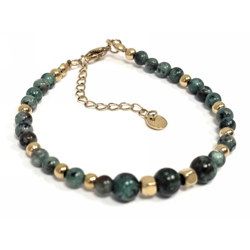 Βραχιόλι Πέτρα με μαλαχίτη και στοιχεία από αιματίτη και ατσάλι σε χρώμα Χρυσαφί..