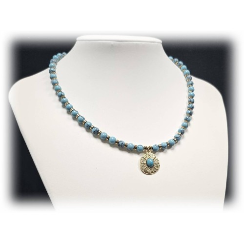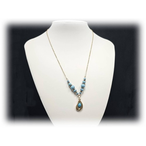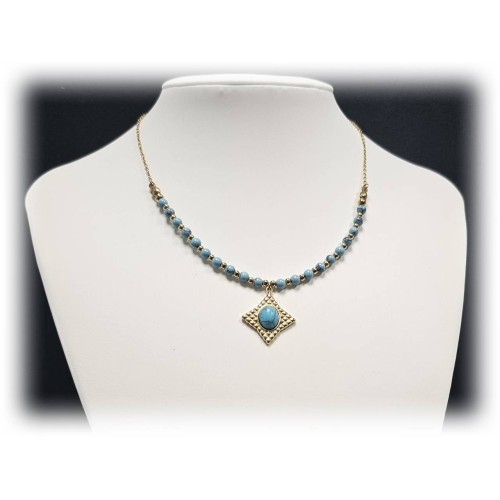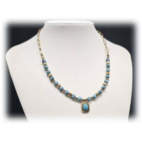 Κολιέ Πέτρα ατσάλι 316L, αλυσίδα με τυρκουάζ σε χρώμα Χρυσαφί..