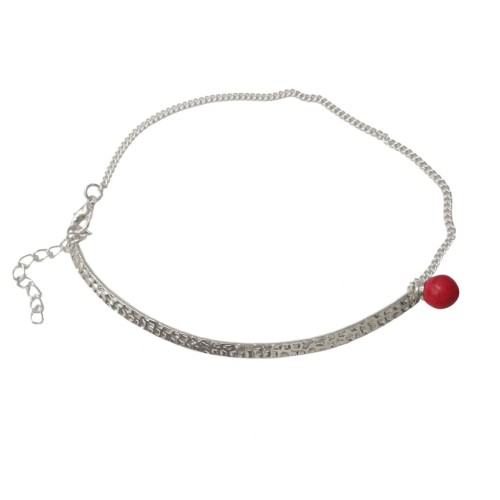 Βραχιόλι Ποδιού Με πέτρα Πέτρα κόκκινη με μεταλλικό σχέδιο..