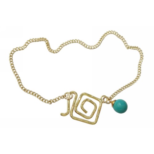 Βραχιόλι Ποδιού Με πέτρα Πέτρα τιρκουάζ με τετράγωνη μεταλλική σφύρα..