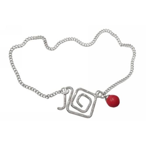 Βραχιόλι Ποδιού Με πέτρα Πέτρα κόκκινο με τετράγωνη μεταλλική σφύρα..