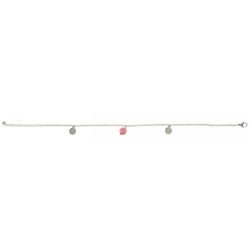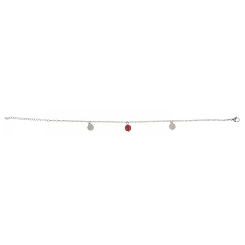 Βραχιόλι Ποδιού Με πέτρα Ατσάλι Με μοτίφ κόκκινο + στρόγγυλο μοτίφ κοχύλι..