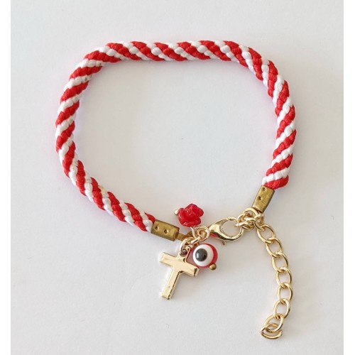Βραχιόλι Μάρτης Σχοινί Με χοντρό σχοινί Μάρτης με χοντρό σχοινί, με στρας, λουλουδάκι+σταυρό, 14cm..