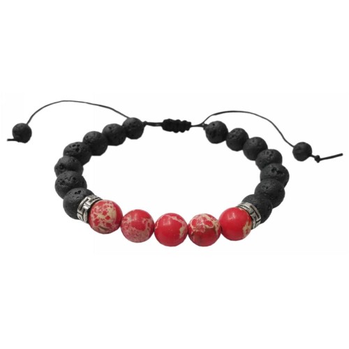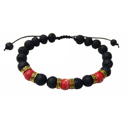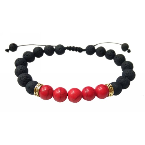 Βραχιόλι Με πέτρα Αντρικό Λάβα Με λάβα + κοραλί + χρυσαφί ροδέλες..