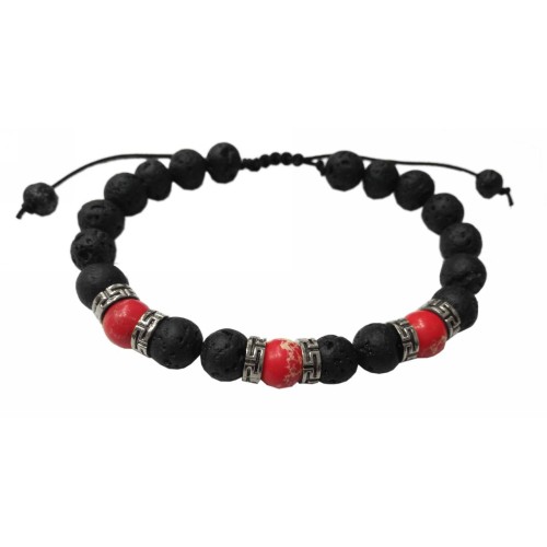 Βραχιόλι Με πέτρα Αντρικό Λάβα Με λάβα + ασημί ροδέλες..