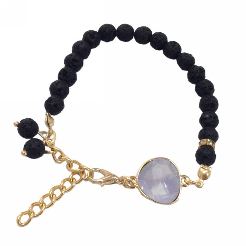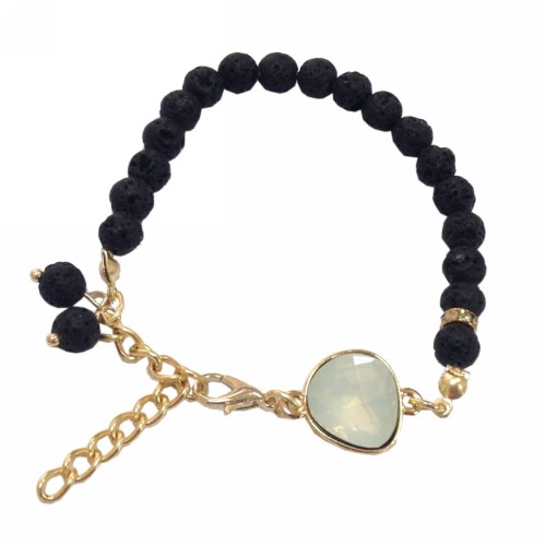 Βραχιόλι Με πέτρα Πέτρα Λάβα με κρυσταλλάκι ρυτίνης..