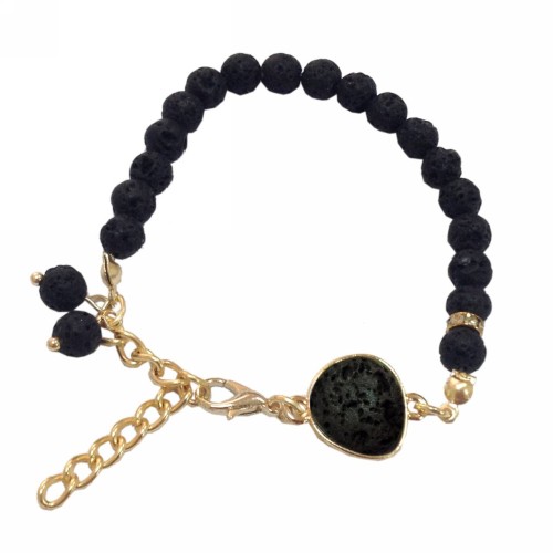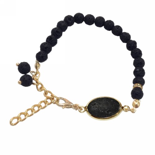 Βραχιόλι Με πέτρα Λάβα με μαύρο πέτρα..