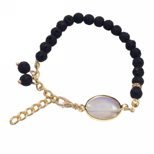 Βραχιόλι Με πέτρα Λάβα με λευκή πέτρα..