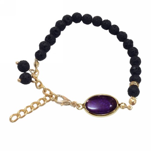 Βραχιόλι Με πέτρα Λάβα με μωβ πέτρα..