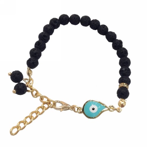 Βραχιόλι Με πέτρα Πέτρα Λάβα σταυρός με ματάκι χωρίς γωνίες..