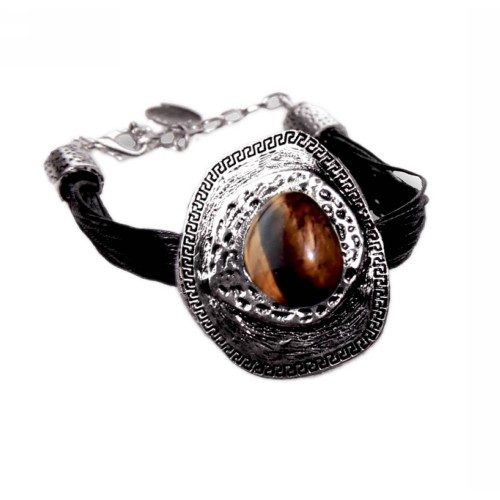 Βραχιόλι Με πέτρα 24πλό με μαύρο σχοινί..
