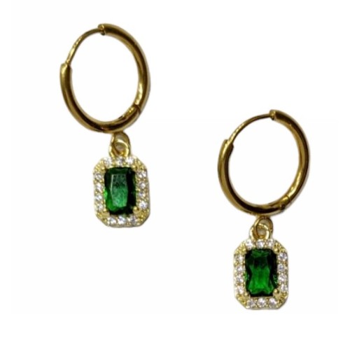 Kostibas 3113-772XP, Σκουλαρίκια κρίκοι, Zircon Ατσάλι, Χρυσό και Πράσινο