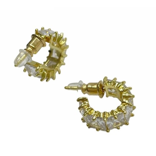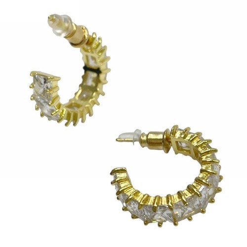 Σκουλαρίκια Κρίκοι Στρας Μεταλλικό Copper with square zircon, 14.5mm ΧΡΩΜΑ:18k gold..