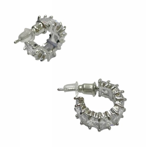 Σκουλαρίκια Κρίκοι Στρας Μεταλλικό Copper with square zircon, 9.5mm ΧΡΩΜΑ:White k..