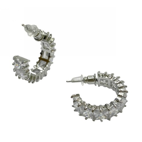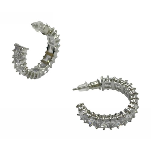 Σκουλαρίκια Κρίκοι Στρας Μεταλλικό Copper with square zircon, 14.5mm ΧΡΩΜΑ:White k..