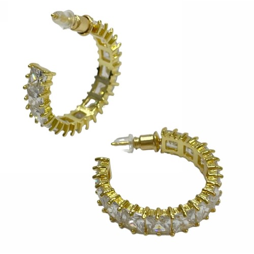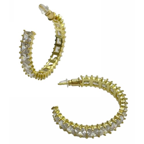 Σκουλαρίκια Κρίκοι Στρας Μεταλλικό Copper with square zircon, 30mm ΧΡΩΜΑ:18k gold..
