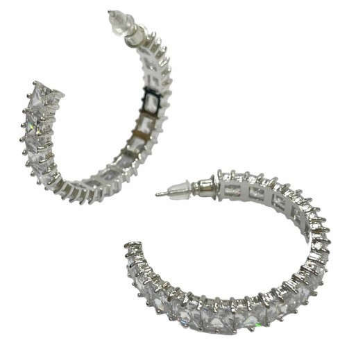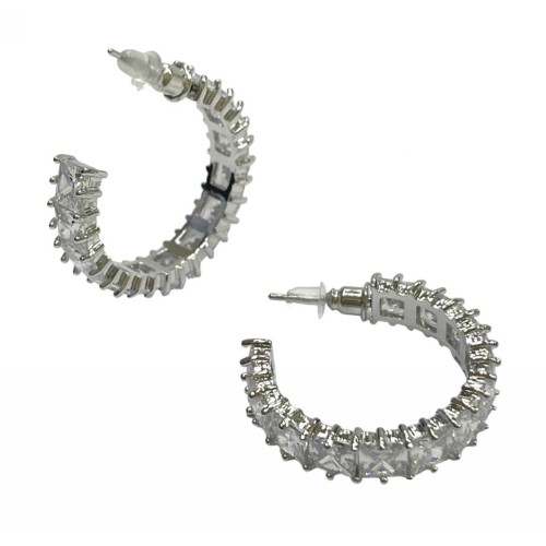 Σκουλαρίκια Κρίκοι Στρας Μεταλλικό Copper with square zircon, 30mm ΧΡΩΜΑ:White k..