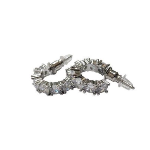 Kostibas 3112-703A4, Σκουλαρίκια κρίκοι, Στρας, Μεταλλικό, Λευκό