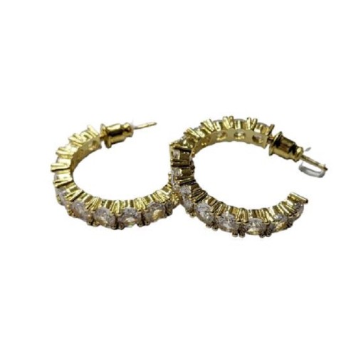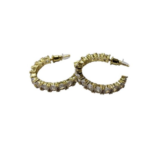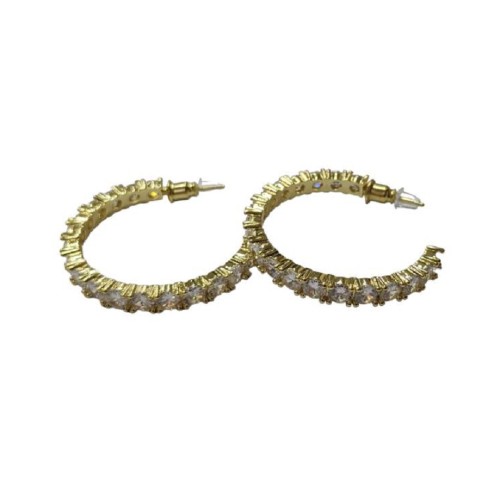 Σκουλαρίκια Κρίκοι Στρας Μεταλλικό Copper with round zircon, 30mm ΧΡΩΜΑ:18k gold..