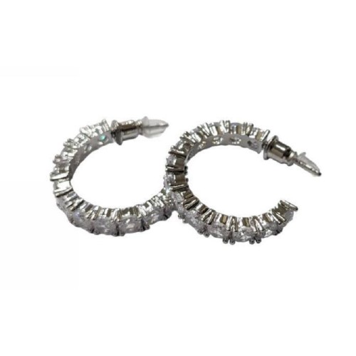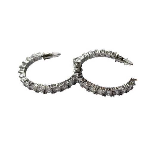 Σκουλαρίκια Κρίκοι Στρας Μεταλλικό Copper with round zircon, 22.5mm ΧΡΩΜΑ:White k..