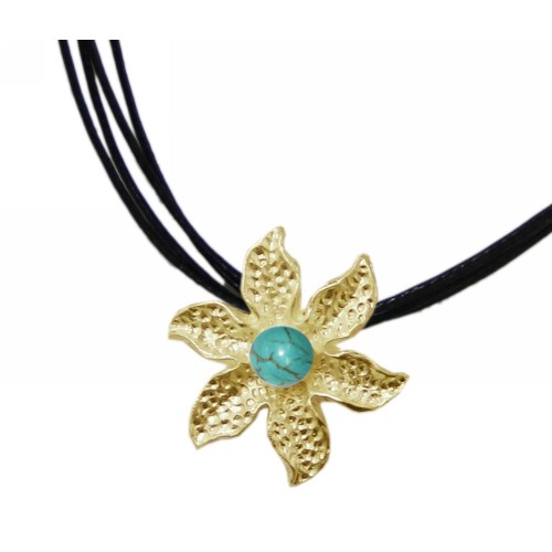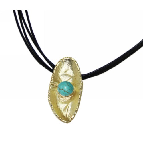 Μενταγιόν Διάφορα σχέδια Μεταλλικό Φύση 4σειρο με πέτρα τυρκουάζ..