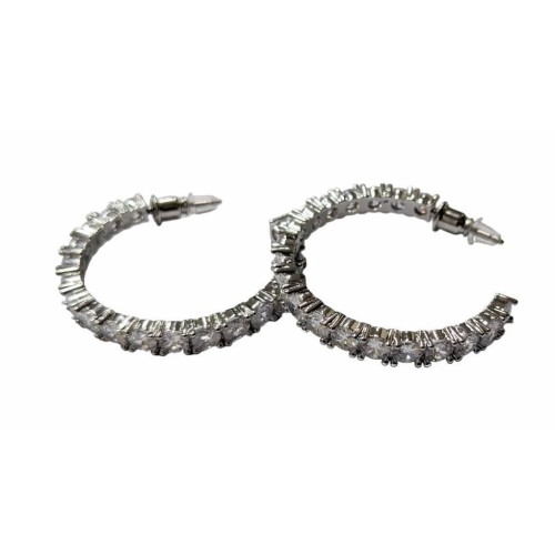 Σκουλαρίκια Κρίκοι Στρας Μεταλλικό Copper with round zircon, 30mm ΧΡΩΜΑ:White k..