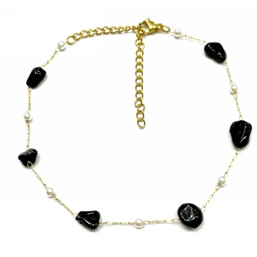 Βραχιόλι Ποδιού Ατσάλι Ατσάλι ΧΡΩΜΑ:Χρυσό / Μαύρες..