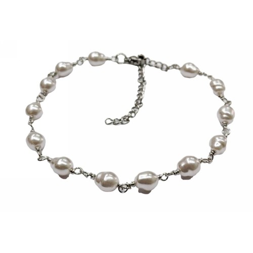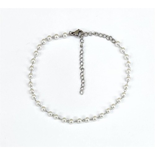 Βραχιόλι Ποδιού Ατσάλι Ατσάλι Με πέρλα με πέρλα 4mm MHK:20+7cm ΧΡΩΜΑ:white..