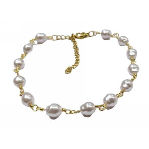 Kostibas 2012-901X2, Βραχιόλι ποδιού, Μεταλλικό, Χρυσό, ΤΕ, Με πέρλες