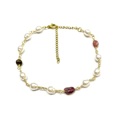 Kostibas 2012-901X3, Βραχιόλι ποδιού, Μεταλλικό, Χρυσό, Με πέρλες και πολύχρωμες πέτρες