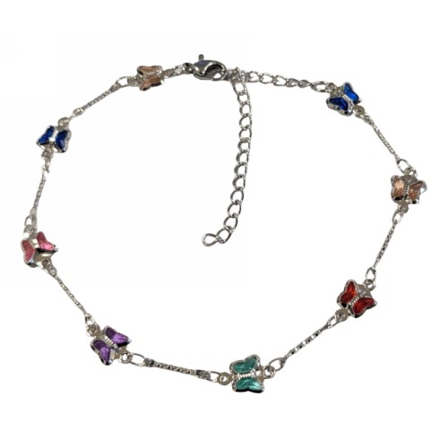 Kostibas 2013-763A, Βραχιόλι ποδιού, Ατσάλι, Με αλυσίδα πεταλούδα, ΤΕ, Ασημί