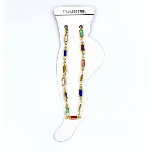 Kostibas 2012-906XO, Βραχιόλι ποδιού, Μεταλλικό, Χρυσό, Με πολύχρωμες πέτρες