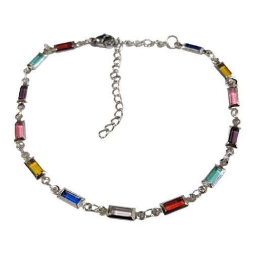 Kostibas 2012-906AO, Βραχιόλι ποδιού, Μεταλλικό, Λευκό, Με πολύχρωμες πέτρες