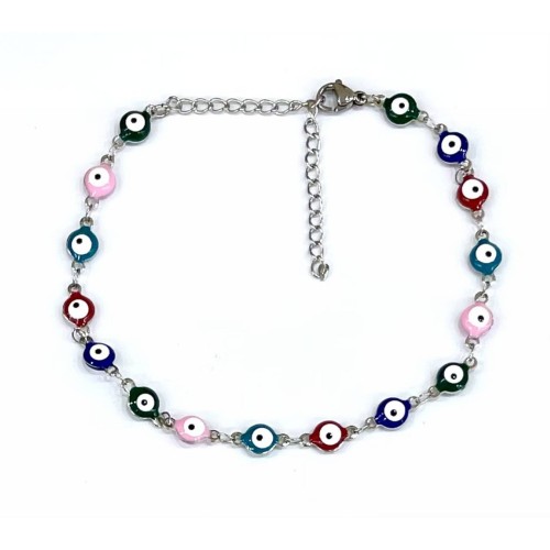 Βραχιόλι Ποδιού Ατσάλι Ατσάλι Με μάτι με μάτια πολύχρωμα MHK:20+7cm ΧΡΩΜΑ:Ασημί..