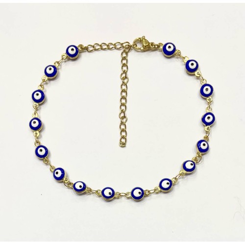 Βραχιόλι Ποδιού Ατσάλι Ατσάλι Με μάτι με μάτια μπλε σκούρα MHK:20+7cm ΧΡΩΜΑ:18k gold..