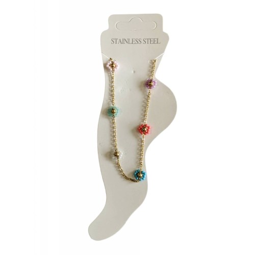 Βραχιόλι Ποδιού Ατσάλι Ατσάλι Με αλυσίδα Με πολύχρωμα λουλούδια MHK:20+7cm ΧΡΩΜΑ:18k gold..