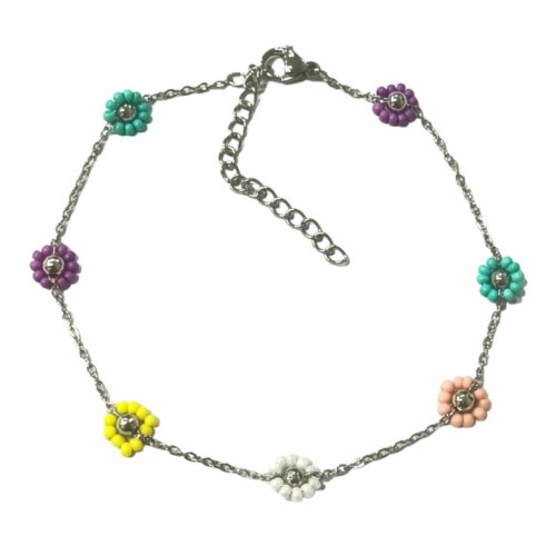 Kostibas 2013-733A, Βραχιόλι ποδιού, Ατσάλι, Με λουλούδια πολύχρωμα, Ασημί