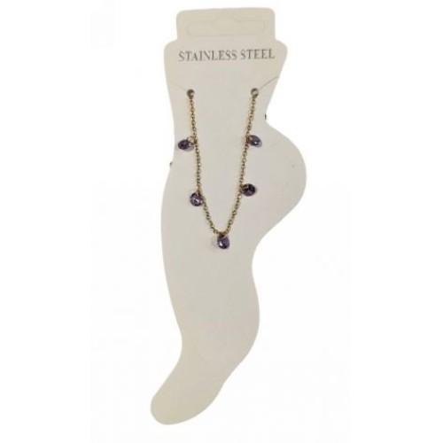 Kostibas 2013-868XJ, Βραχιόλι Ποδιού, Ατσάλι, Γυαλί, Χρυσό/Μωβ