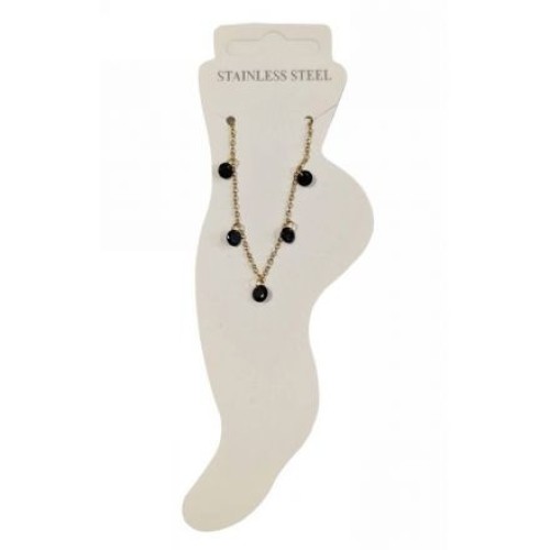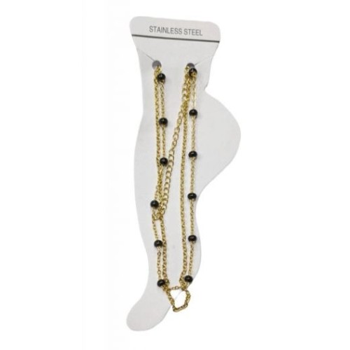 Kostibas 2013-868XM, Βραχιόλι Ποδιού, Ατσάλι, Γυαλί, Χρυσό/Μαύρο