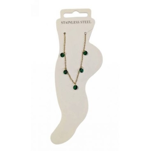 Kostibas 2013-868XP, Βραχιόλι Ποδιού, Ατσάλι, Γυαλί, Χρυσό/Πράσινο