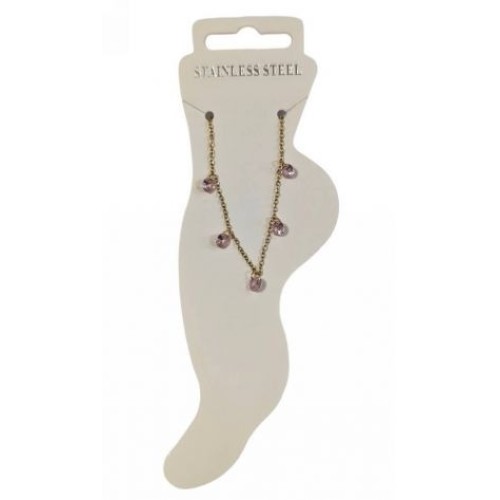 Kostibas 2013-868XR, Βραχιόλι Ποδιού, Ατσάλι, Γυαλί, Χρυσό/Ροζ