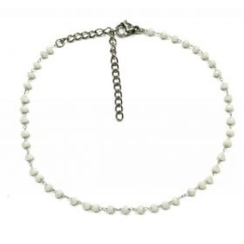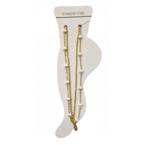 Kostibas 2013-868XL, Βραχιόλι Ποδιού, Ατσάλι, Γυαλί, Χρυσό/Λευκό