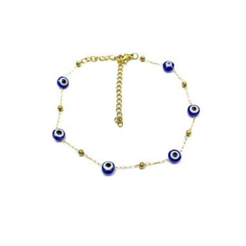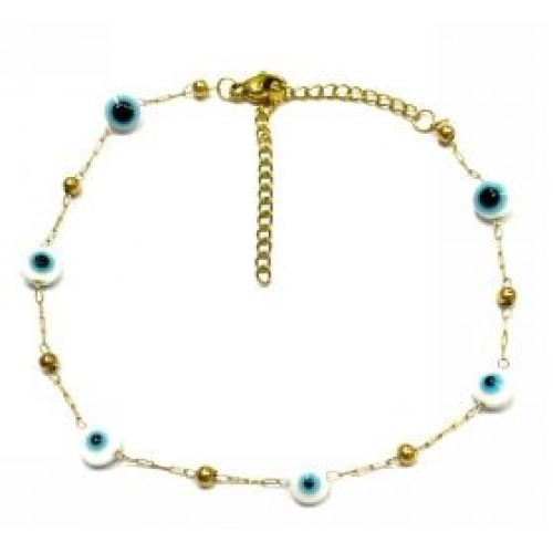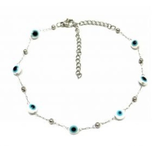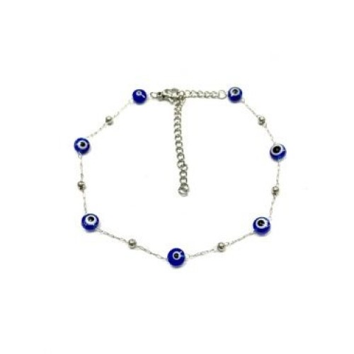 Βραχιόλι ποδιού από ατσάλι με ματάκι και μπίλιες #4 Διαστάσεις: 20cm (+7)..