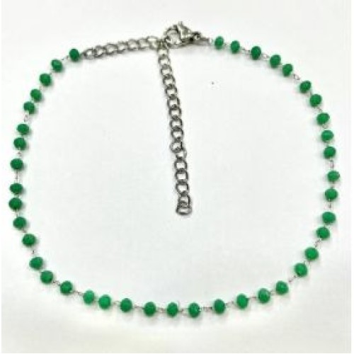 Kostibas 2013-847P, Βραχιόλι Ποδιού, Ατσάλι, Κρυσταλλάκια, Πράσινο